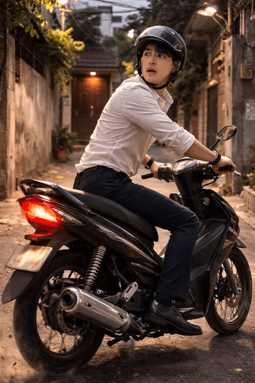 Thằng Tuấn thì bám đuôi người ta như thám tử, ai dè bám tới đúng ‘tọa độ tử thần’ — nhà thằng Nam, nơi đang chôn nguyên mớ lời nói dối của nó. Vừa thấy Trang quẹo vô là hồn vía bay sạch, quay xe còn nhanh hơn lúc đi tán gái! ![]()